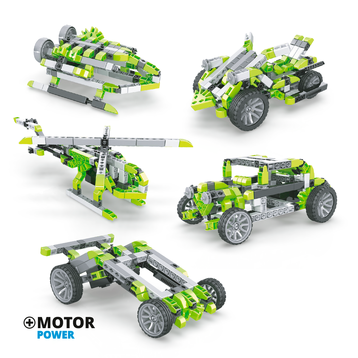10 modelos para armar. Incluye motor Engino. La nueva serie Inventor Mechanics tiene un enfoque temático con capacidades de múltiples modelos, con un impresionante modelo principal. Estas piezas incluyen ruedas de alta precesión, mecanismos y superficies curvas de encaje a presión. Apto para mayores de 9 años. Medidas: 43 x 28 x 5.9 cm